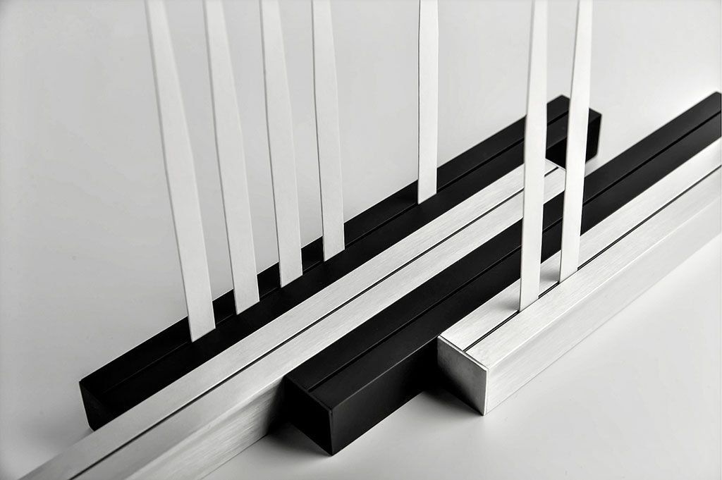 Nous avons choisi des materiaux de haute qualité comme le Zamac, alliage de 5 métaux assurant une densité et une résistance pour nos porte-mouillettes avec pinces détachables. Nos réglettes sont fabriquées en aluminium.
